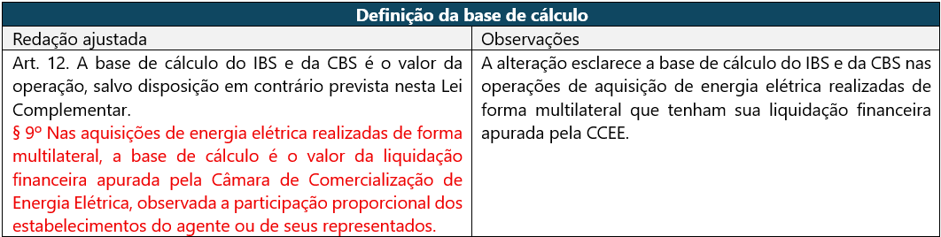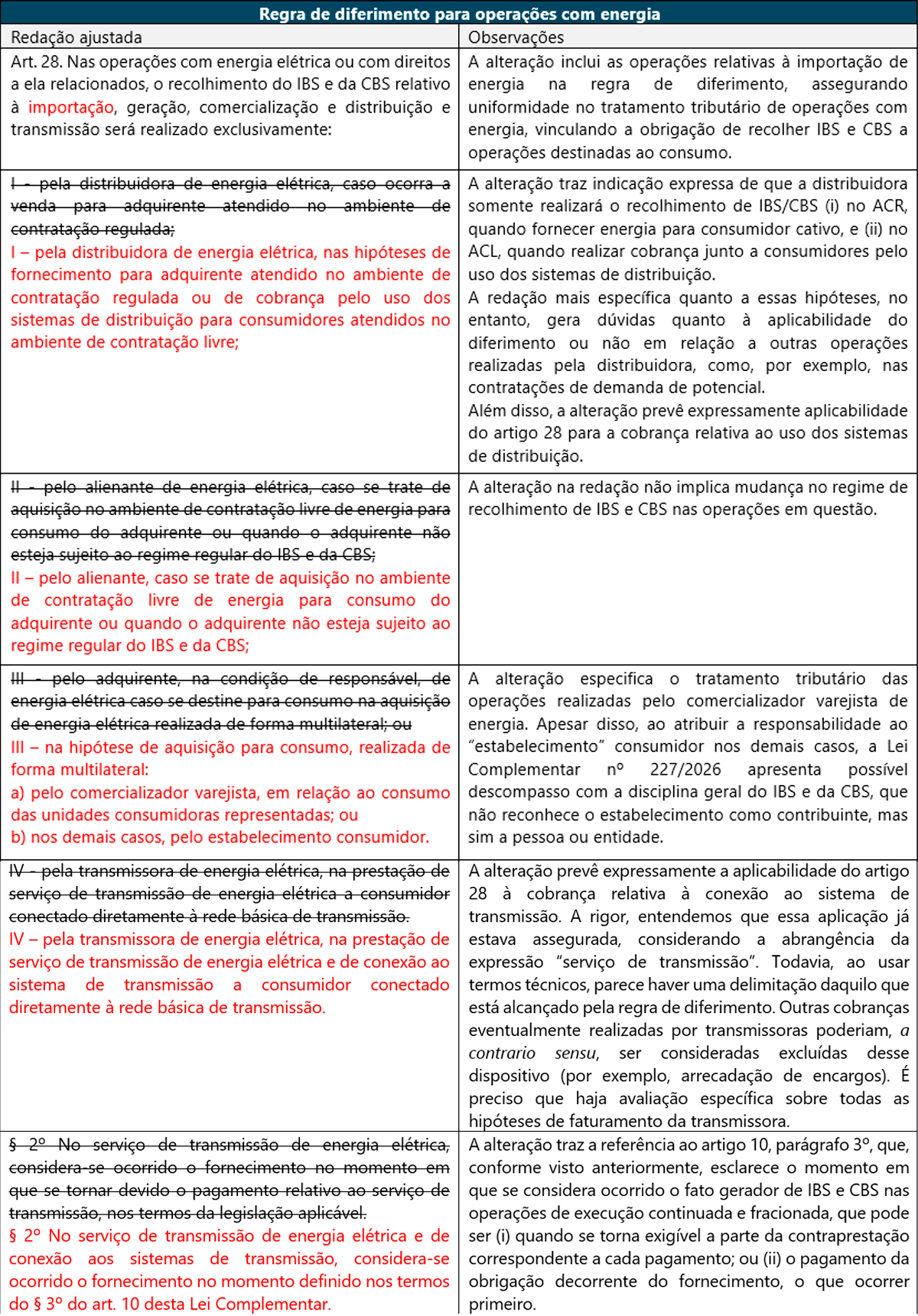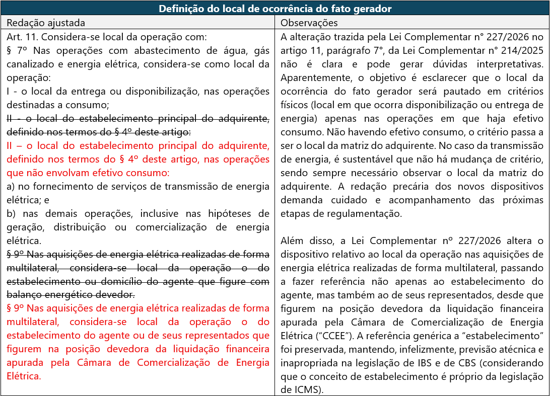 Assim, traremos abaixo uma análise das principais mudanças propostas pela Lei Complementar n° 227/2026 na redação da Lei Complementar nº 214/2025, com foco nos aspectos relevantes para as operações com energia elétrica.