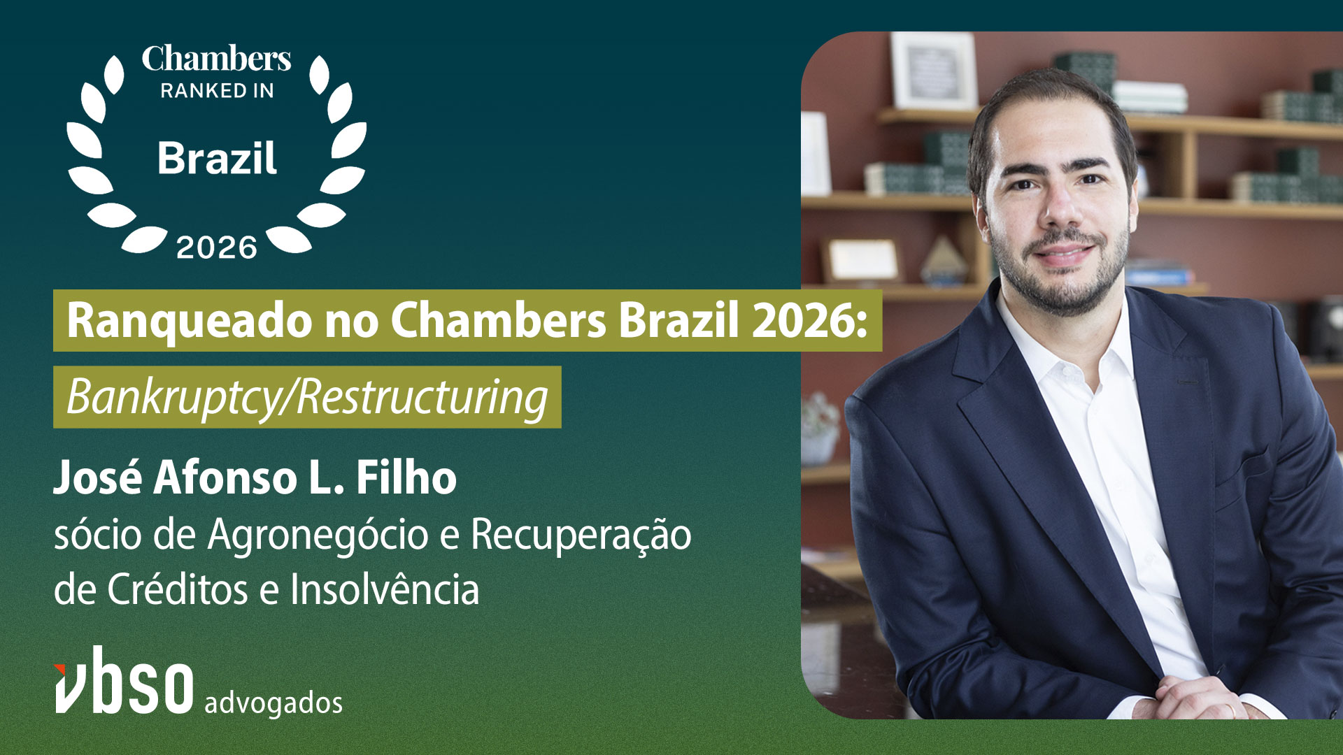 Nesta terça-feira, 7 de abril, o sócio José Afonso Leirião Filho passa a integrar a lista de profissionais do VBSO Advogados reconhecidos no Chambers and Partners por sua excelência técnica.